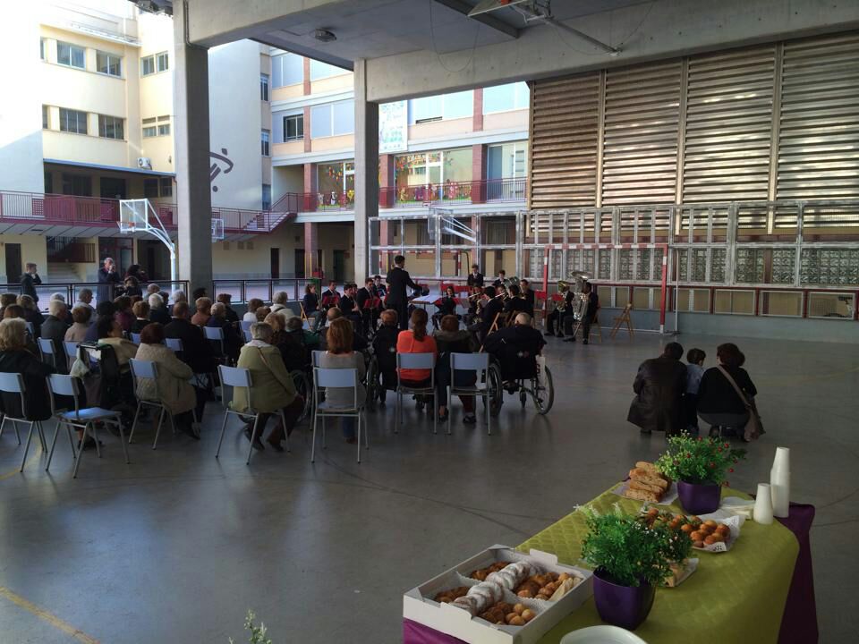 La Banda de Música del Col·legi Pare Manyanet, oferirà un concert al recinte de la nostra Escola . Està previst que hi assisteixin aquells avis i àvies que estiguin adherits a l’anomenada organització, així com els avis de la Residència del carrer Montnegre que ho desitgin. L’activitat tindrà lloc a la pista coberta del pati i està prevista de 4 a dos quarts de 7 de la tarda aproximadament.